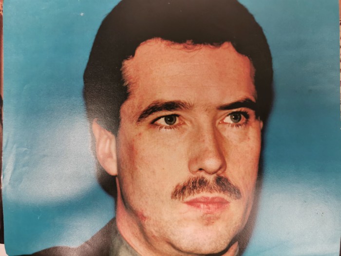 A photo of Paul ‘Bonanza’ McCann. Paul was a close friend of Gino’s who died in the Lenadoon area of West Belfast whilst engaging the occupation forces as they attempted to arrest an INLA Active Service Unit comprising Bonanza, Gino and others. Gino was arrested at the scene.